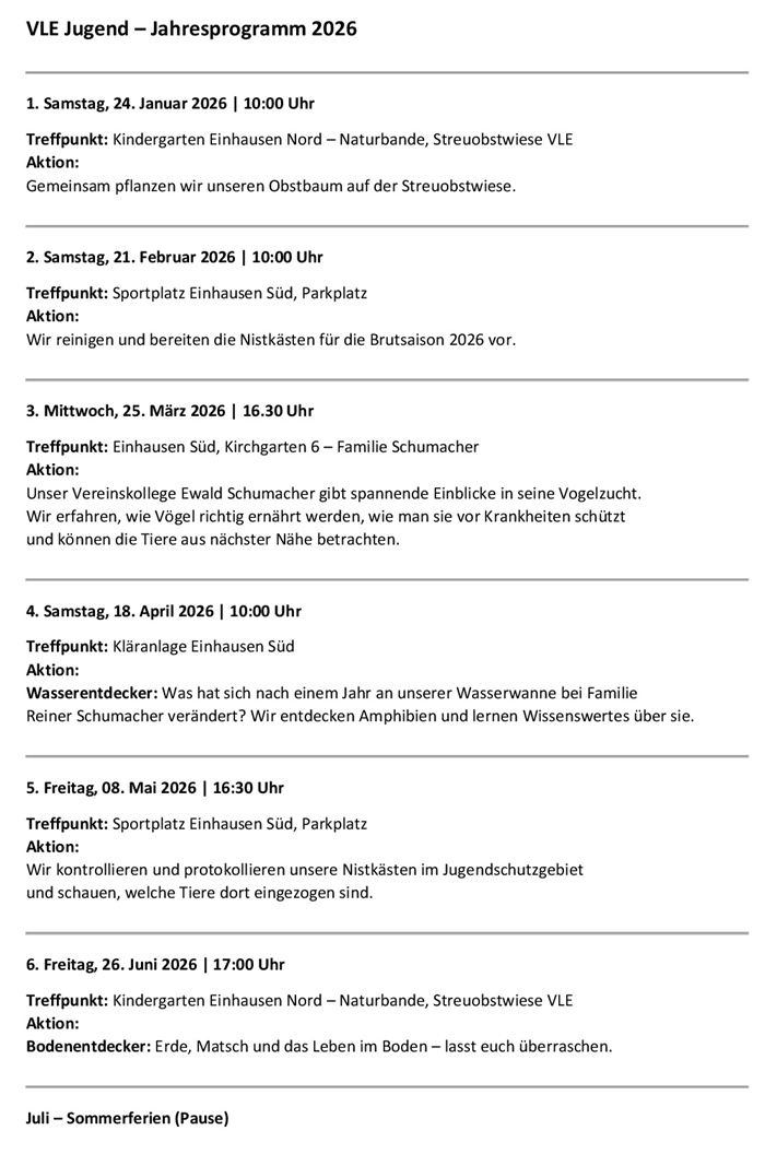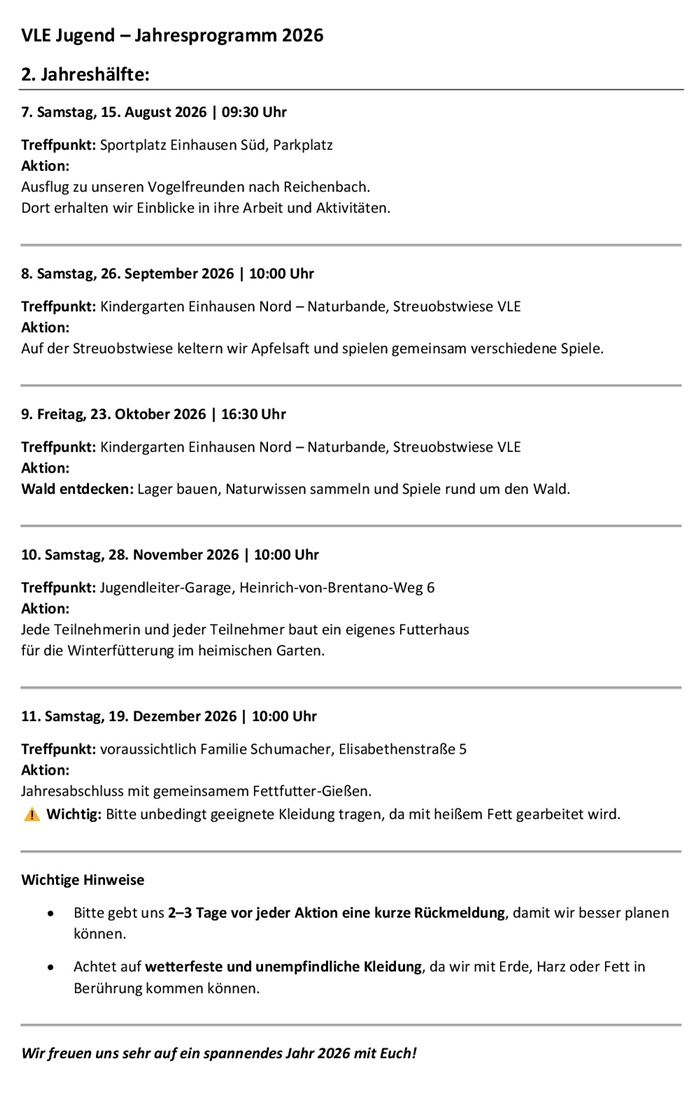 Termine und Veranstaltungen der Jugendgruppe
